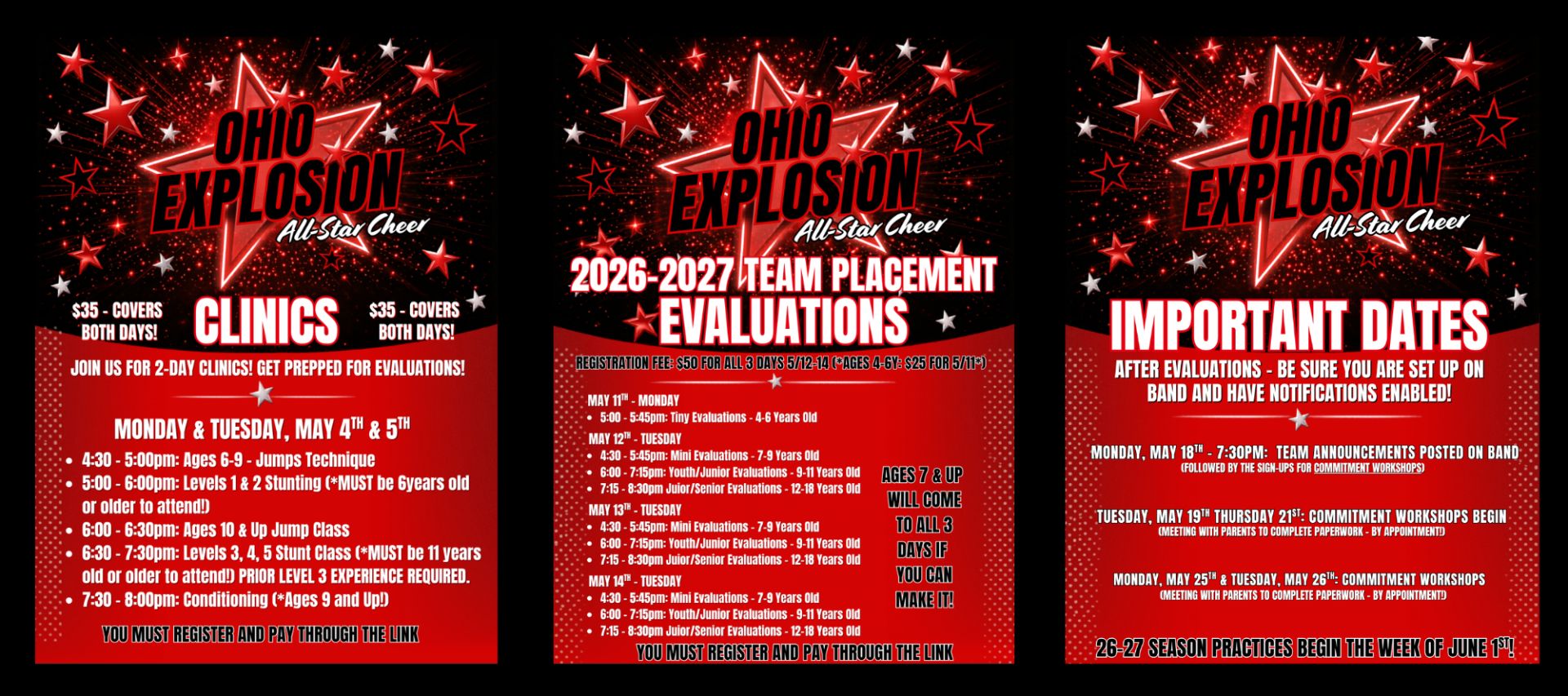 REGISTER TODAY! EVALUATIONS FOR 2026-2027 TEAM PLACEMENTS MORE INFORMATION COMING SOON!